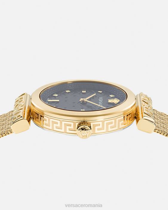 acest ceas rafinat se caracterizează prin litere Versace pe urechi care încadrează cadranul. Cadranul este îmbogățit cu o medusa tridimensională la 12h și un model greca. accesoriul este complet cu o bandă din plasă metalică. toate ceasurile Versace sunt garantate de marcajul „swiss made”.
