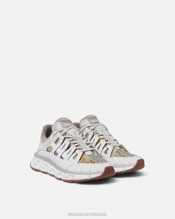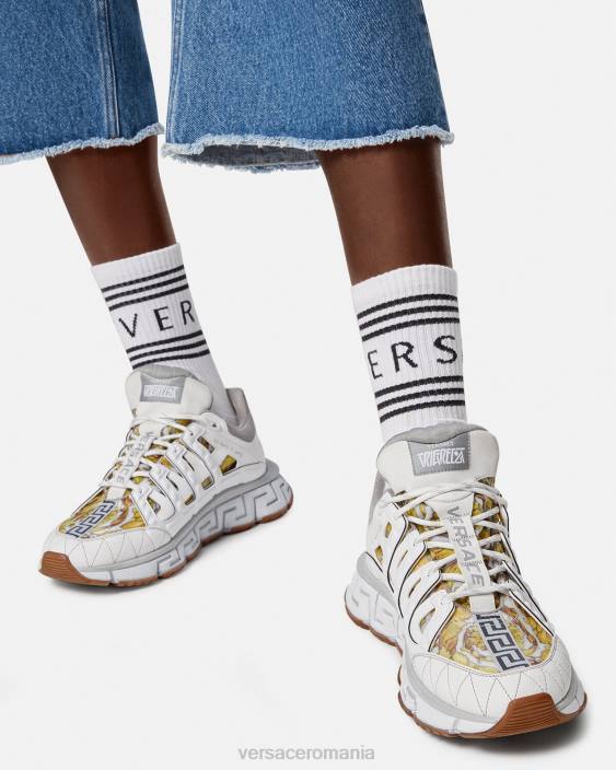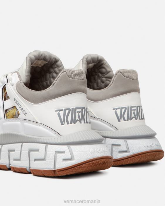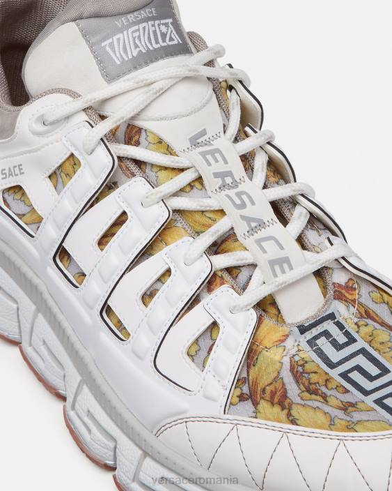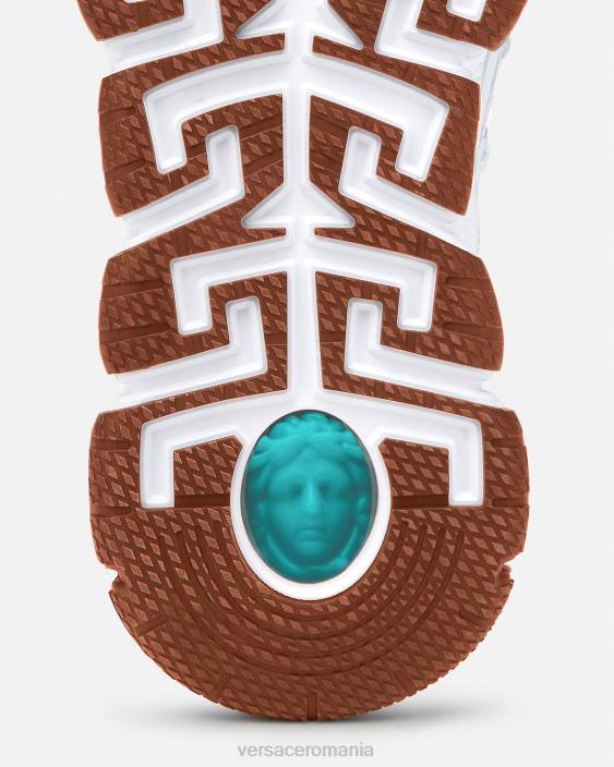 dresurile trigreca aduc inovație esteticii în continuă evoluție a mărcii. Execuțiile tridimensionale greca pe tălpi oferă o aterizare de impact cu „sistemul de amortizare greca”. într-un semn subtil la orașul natal al lui Verace, partea superioară are un imprimeu discret al coordonatelor milanului.