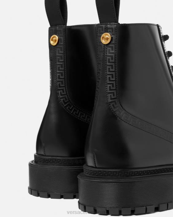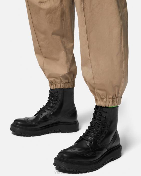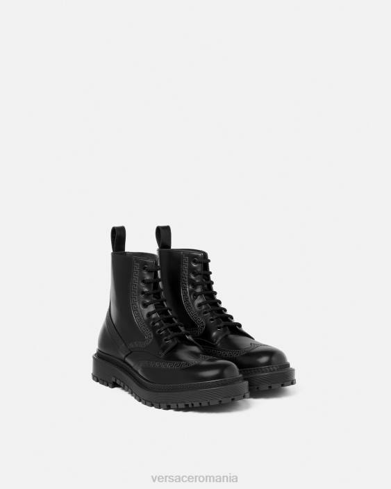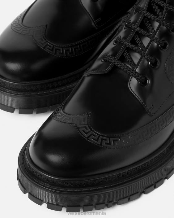 Așezate pe tălpi de cauciuc călcate, aceste botine sunt realizate din piele lustruită, cu detalii brogue la greca într-un design cu șireturi.