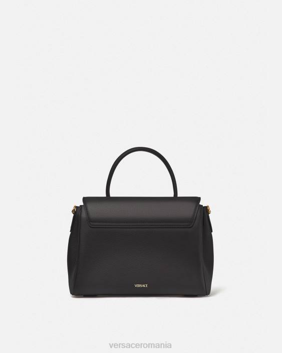 Confecționată din piele granulată, într-o siluetă structurată, geanta de mână este împodobită cu o placă cu medusa în față. stilul versatil poate fi purtat în mână sau purtat în corp de mână folosind lanțul interschimbabil și curelele de umăr din piele.