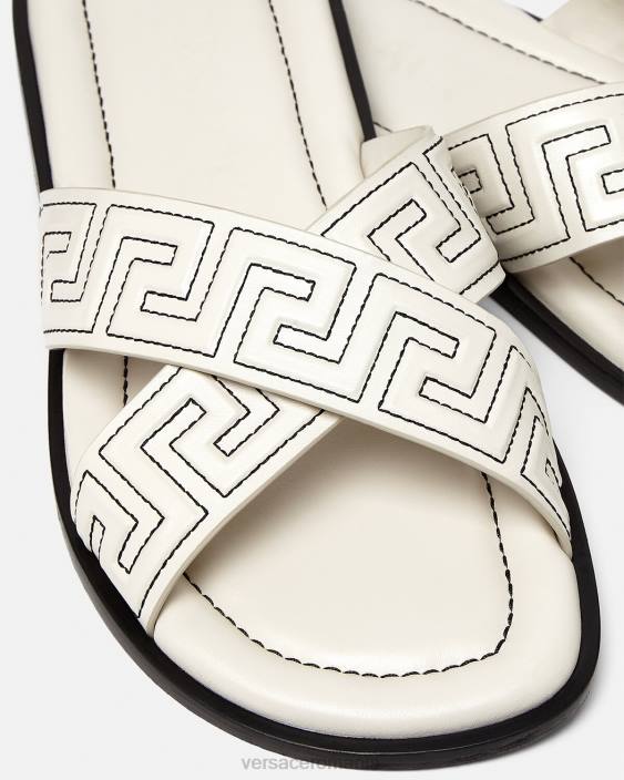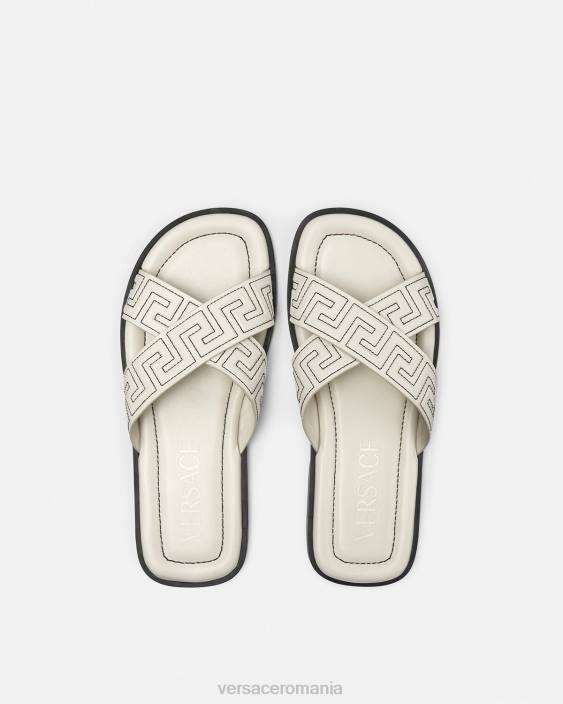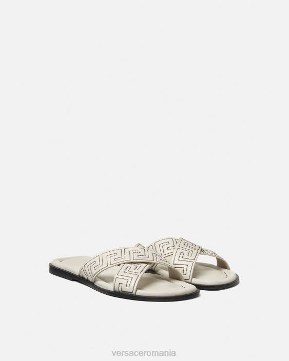 aceste sandale cu vârf deschis sunt realizate din piele cu un model greca cusut deasupra la bretele.