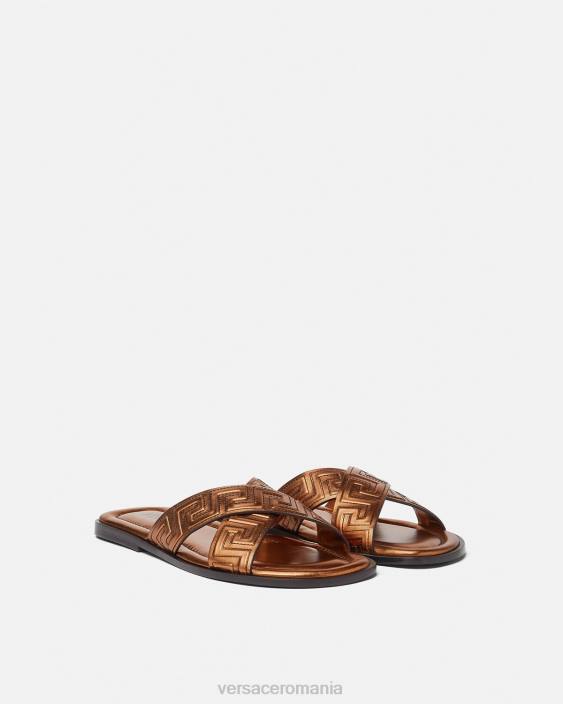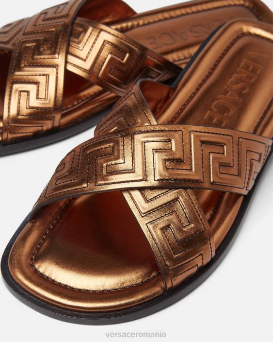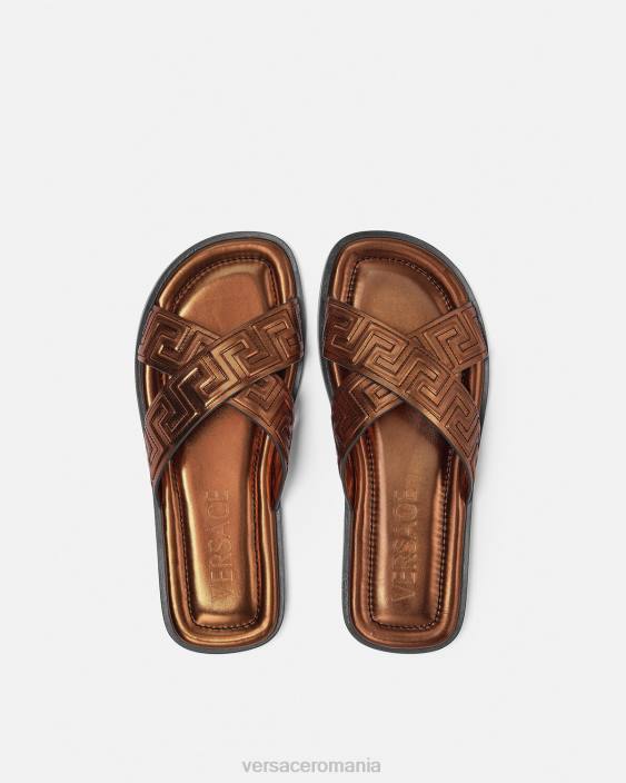 aceste sandale cu vârf deschis sunt realizate din piele cu un model greca cusut deasupra la bretele.