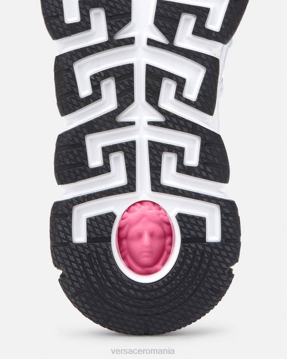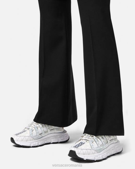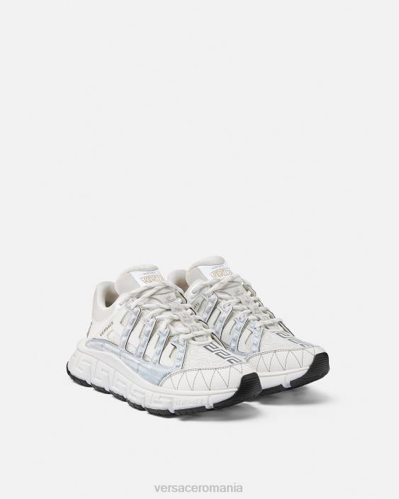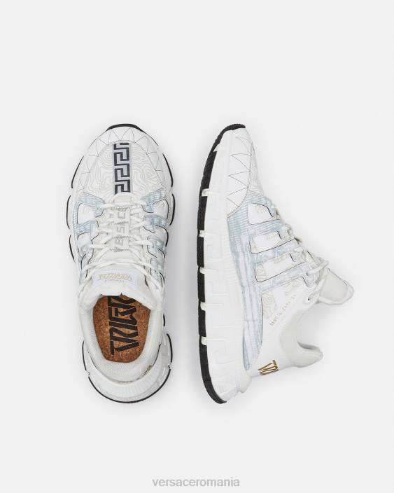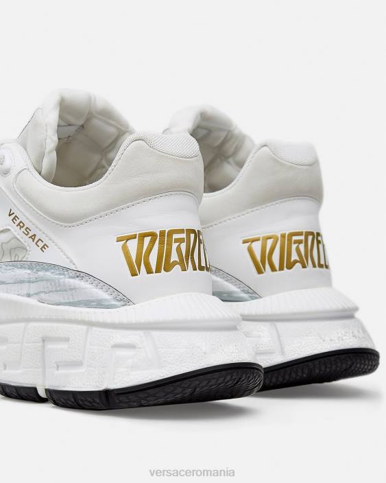 dresurile trigreca aduc inovație esteticii în continuă evoluție a mărcii. Execuțiile tridimensionale greca pe tălpi oferă o aterizare de impact cu „sistemul de amortizare greca”. într-un semn subtil la orașul natal al lui Verace, partea superioară are un imprimeu discret al coordonatelor milanului.