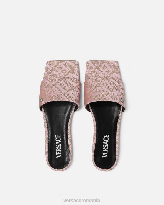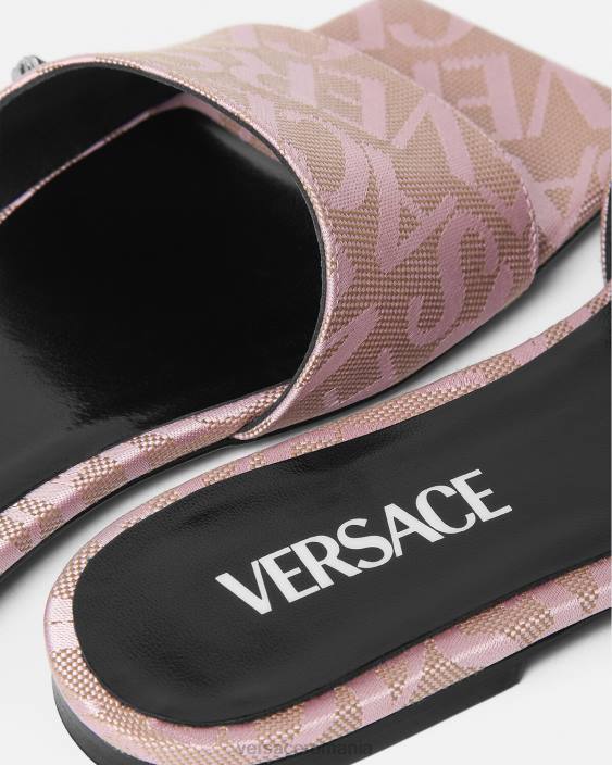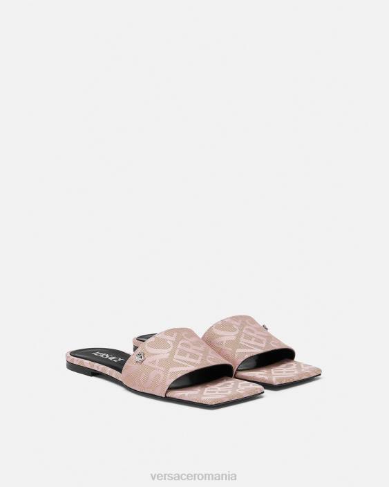 aceste sandale plate sunt realizate din pânză jacquard versace și au un vârf pătrat.