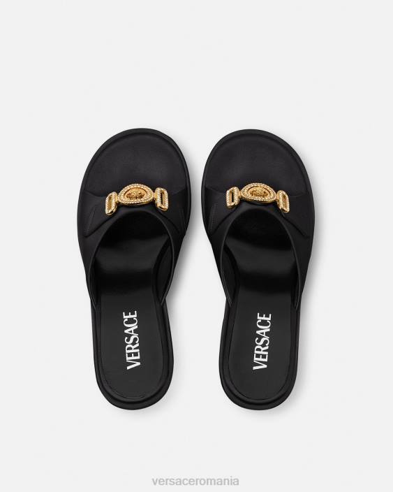 un stil elegant, acești catâri sunt confecționați din satin și împodobiți cu un hardware cristalizat medusa biggie pentru o doză de ADN Versace.