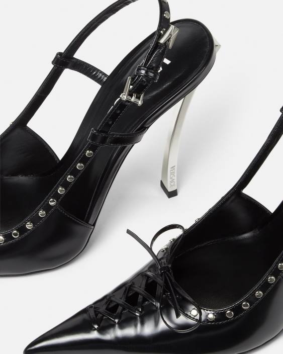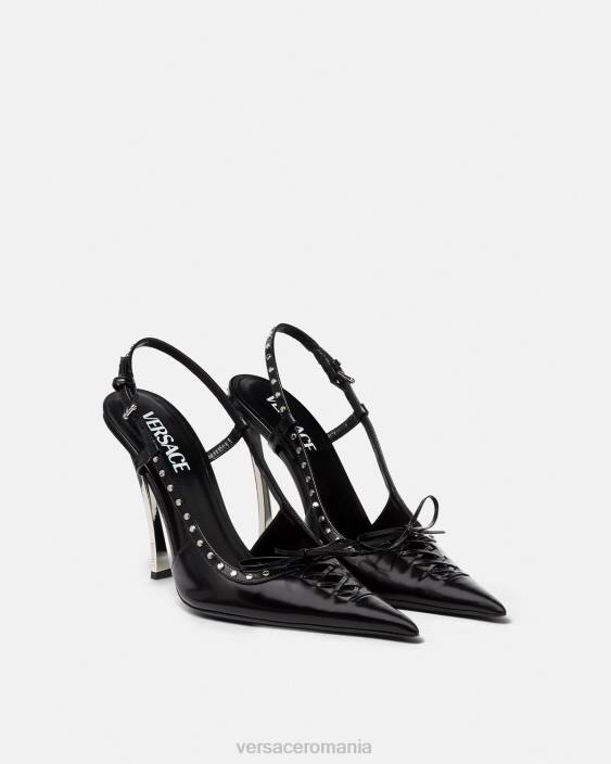 negru pompe slingback cu dantelă Versace femei pantof 40L6382