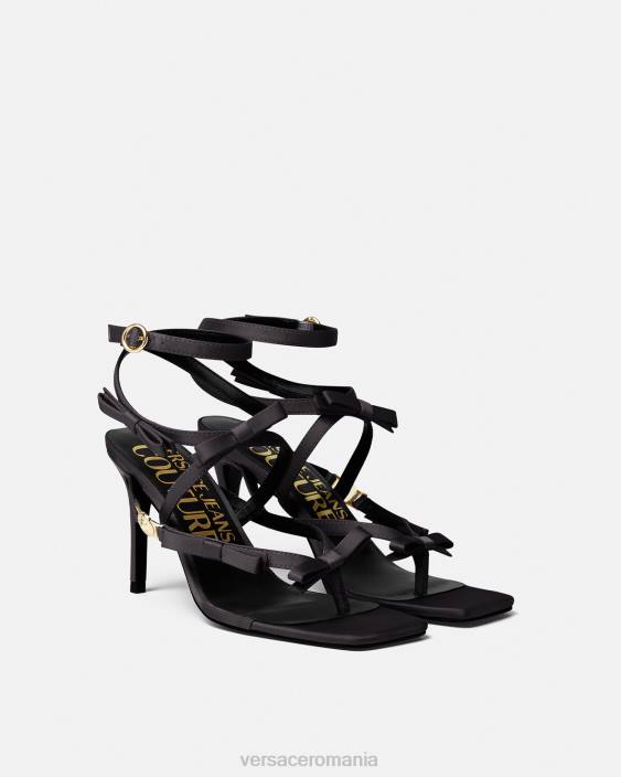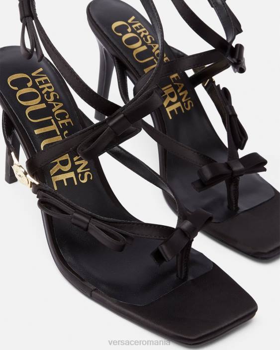 sandale cu vârf deschis, cu detalii cu fundă și tocuri stiletto înalte.