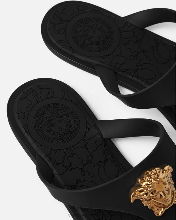 realizate din cauciuc, aceste sandale plate au un motiv barocco tonal și placa cu medusa.