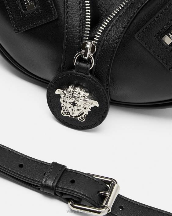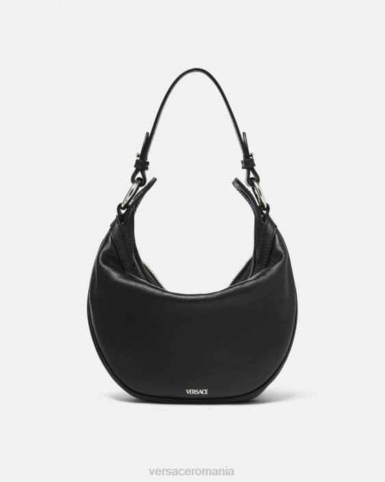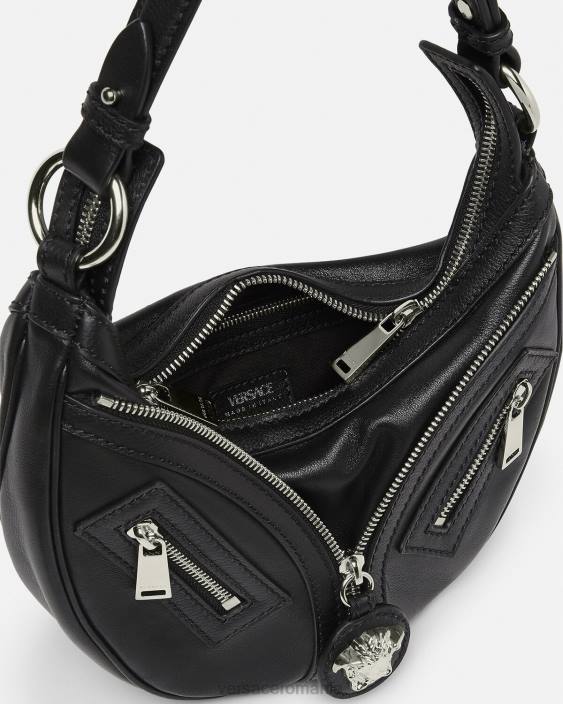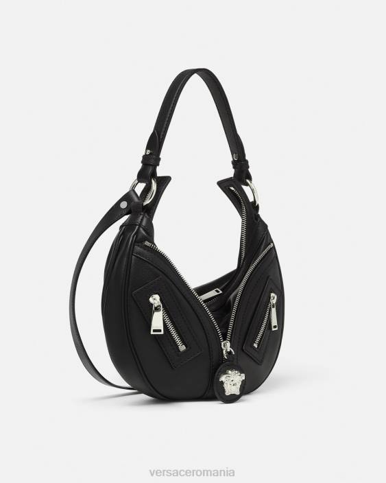 o reediție a unei siluete hobo de arhivă, geanta de umăr repetitivă este realizată din piele italiană suplă, cu o curea de umăr detașabilă. Inspirat de motocicliști, un puller cu farmec cu medusa și fermoarele diagonale adaugă o atitudine grunge cu o margine versace.